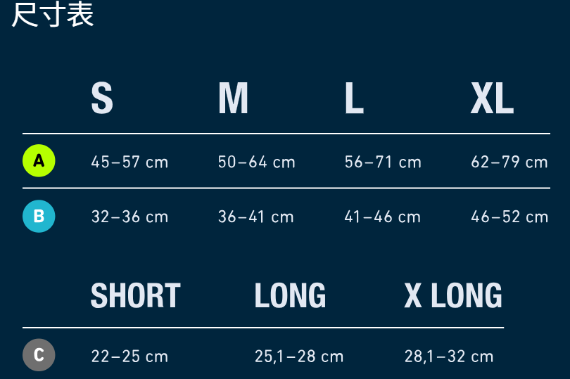 袖子採用運動設計,可成對出售,耐用、透氣,並且由於上緣有矽膠頂帶,可牢固貼合。它們可以在 40 °C 下洗滌,並且可以用滾筒烘乾。為了確保選擇正確的尺碼,腿必須彎曲 90°,並且必須在彎曲的膝蓋上方測量大腿週長。也必須測量彎曲膝蓋下方一手寬度的腿週長,以及這兩點之間的長度。